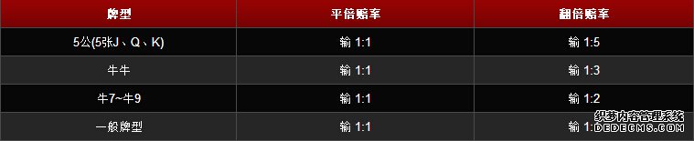 ![]() ¿ªÅÆË³Ðò£ºÒÔÄæÊ±Õë·½Ïò¿ªÅÆ (ÈçÏÂ) ![]() ´óС ÔÚÓÎÏ·ÖУ¬ÈçÓöµãÊýÏàͬʱ£¬½«´Ó5ÕÅÅÆÖÐÌôÑ¡ÅÆÖµ×î´óµÄ±ÈÅÆ£¬ÅÆÖµ´óµÄÒ»·½»ñʤ¡£ÈçµãÊýÓëÅÆÖµ¶¼Ïàͬʱ£¬×îºóÔٱȻ¨É«´óС¡£Ïêϸ´óС±È½ÏÇ뿴ϱí˵Ã÷¡£